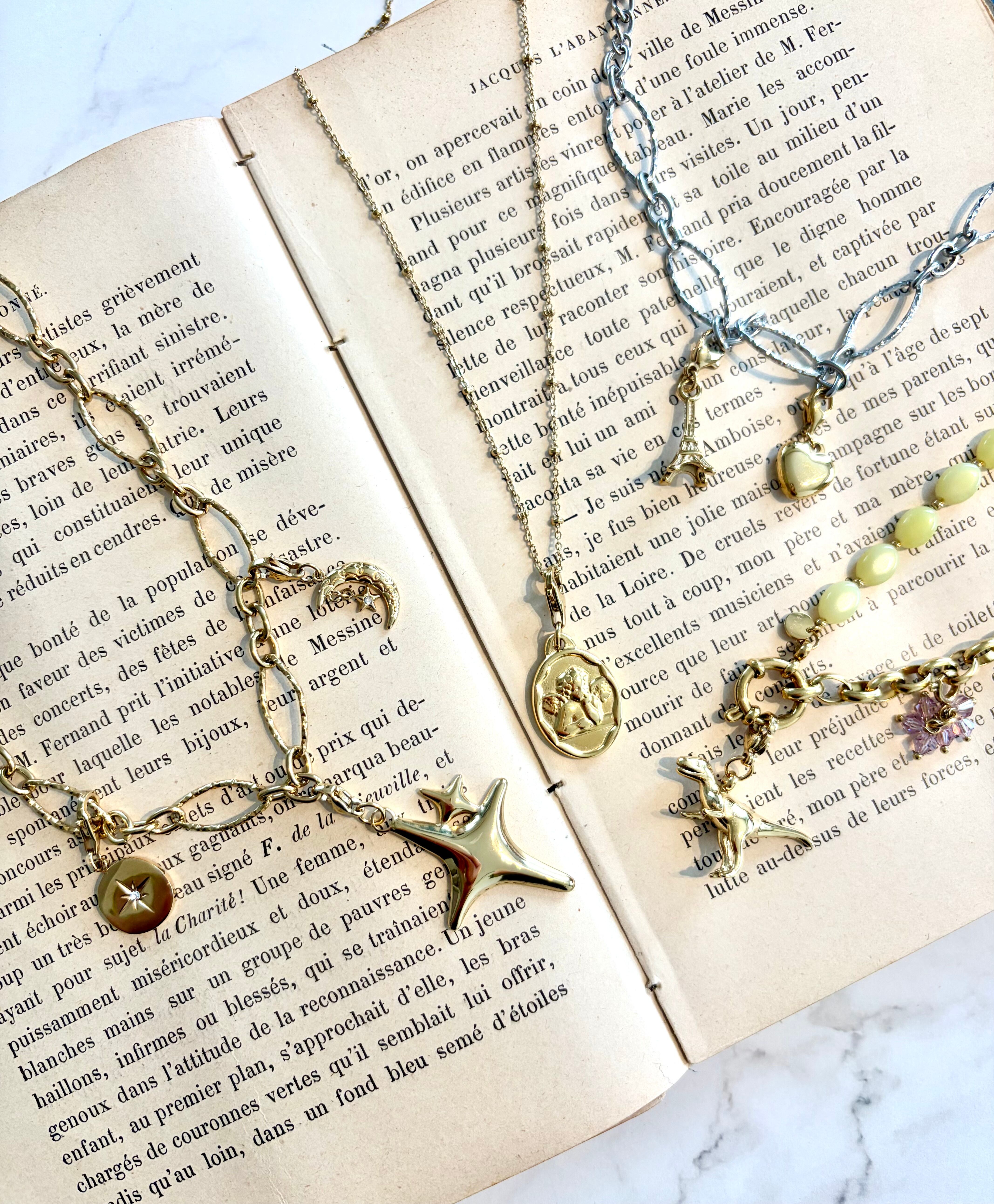 ステンレスチェーンと天然石のハーフデザインが可愛いネックレス。